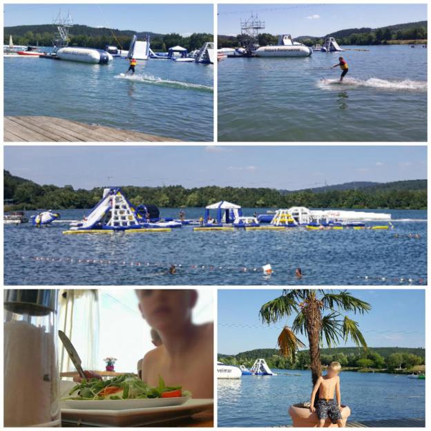 Arbeit - Aquapark - Wakeboard - Wasserski - Schwimmeinheit - Essen - Entspannung - Zufriedenheit